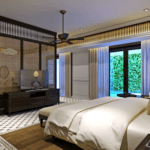 Like its predecessor, The Anam Mui Ne’s design is an echo out of Vietnam’s bygone Indochine period, with architecture guided by Hanoi’s grand old French villas. Evoking a romantic atmosphere, the likes of glowing lanterns, customized encaustic mosaic tiles, big-bellied clay water vases, statues on plinths, imperial style roofs, cornice detailing and intricate woodwork have been crafted by artisans from across Vietnam whose trades have been handed down the generations. Giving way to an infinity pool and the ocean beyond, the lobby makes for a striking first impression, replete with a grand piano and a sloping roof fashioned with glass panels that water gently flows over, casting faint shadows underneath.
