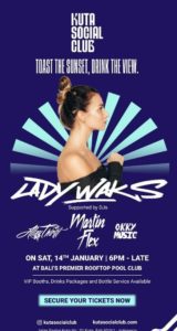 This powerhouse will kick off the party for 2023 at Kuta Social Club on Saturday, 14 January. From 6PM – late, supporting DJs will be playing their tunes as you dance the night away.