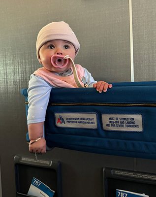 Now the new parents are doing what any good airline parents do: They are introducing Khloe to her American travel privileges.
