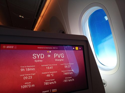 Juneyao Air’s large entertainment screen makes viewing a pleasure